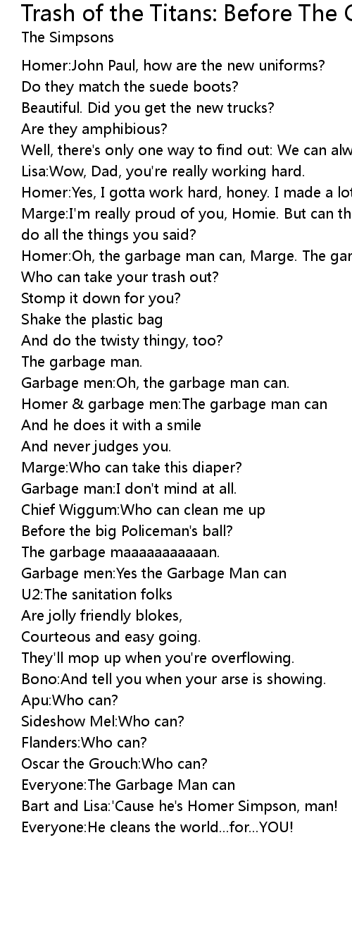 Homer:Oh, the garbage man can, Marge. The garbage man can. |