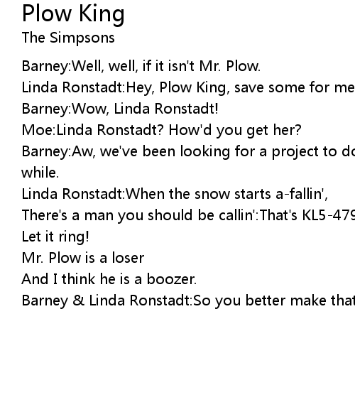 [00:00.56] Barney:Well, well, if it isn't Mr. Plow.
