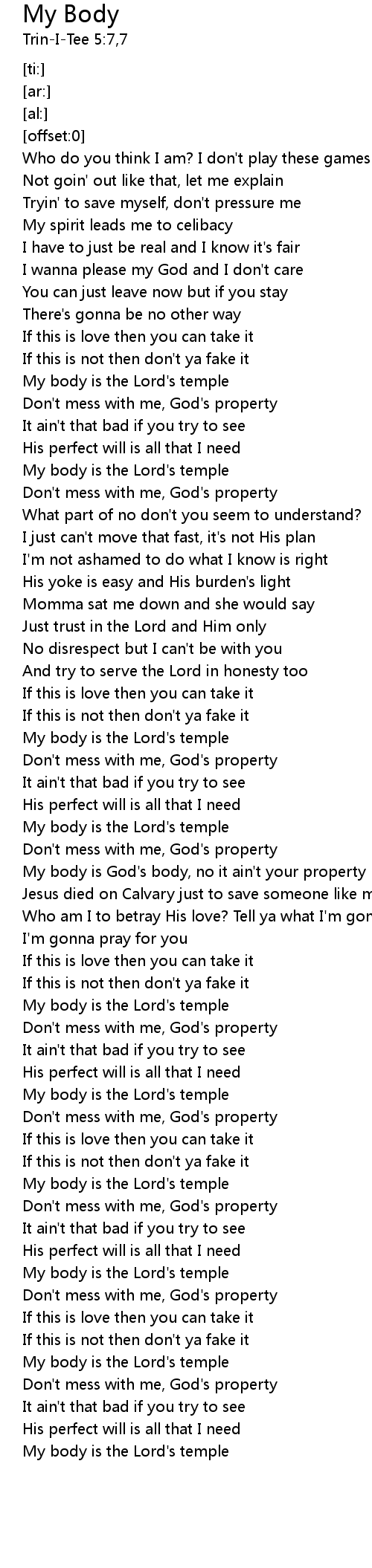 My body is God's body, no it ain't your property |