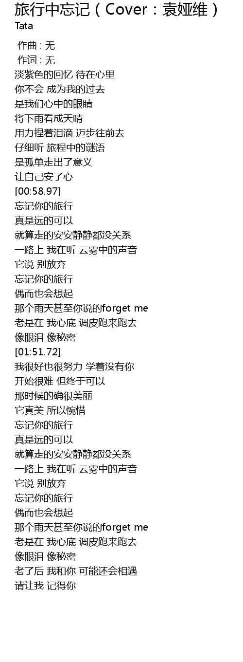 | [03:01.89] | wàng jì nǐ de lǚ xíng |