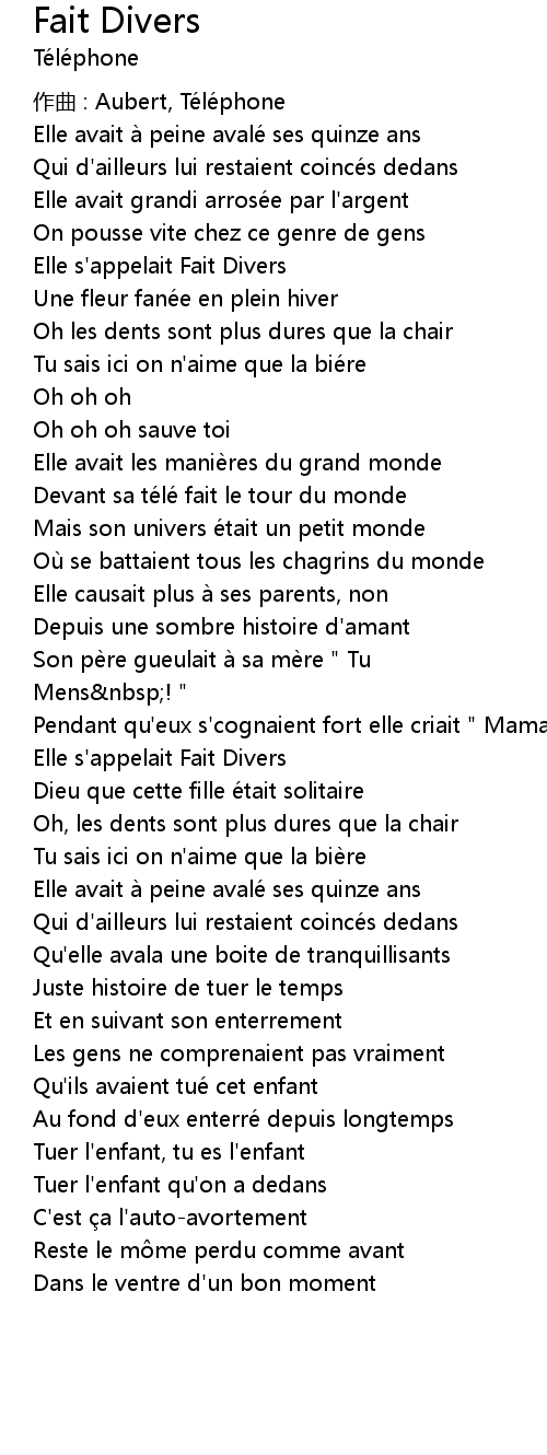 | Pendant qu'eux s'cognaient fort elle criait " Maman ! " | |