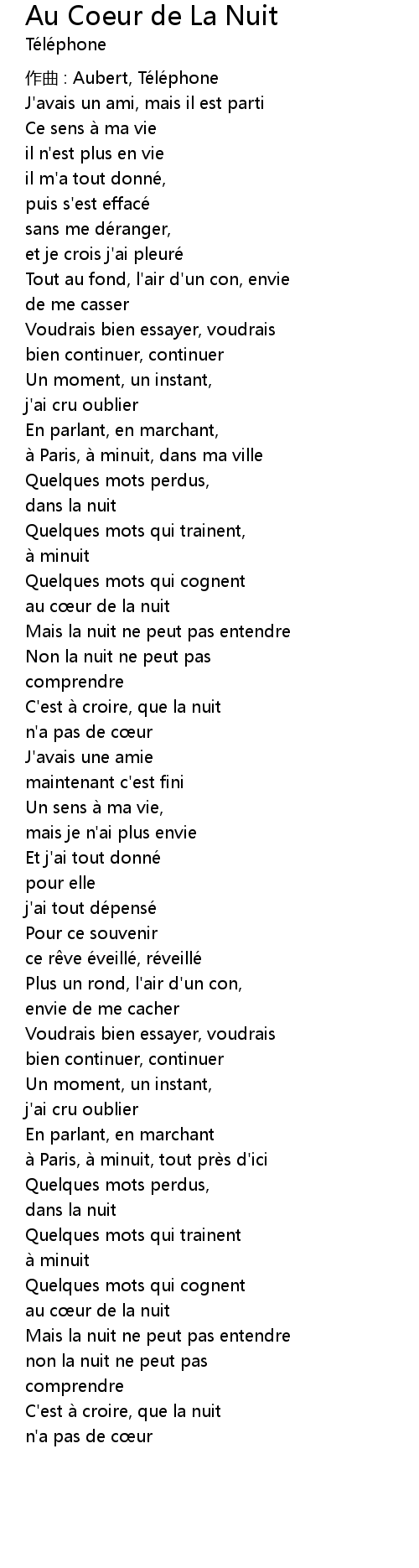 | Song | Au Coeur de La Nuit |