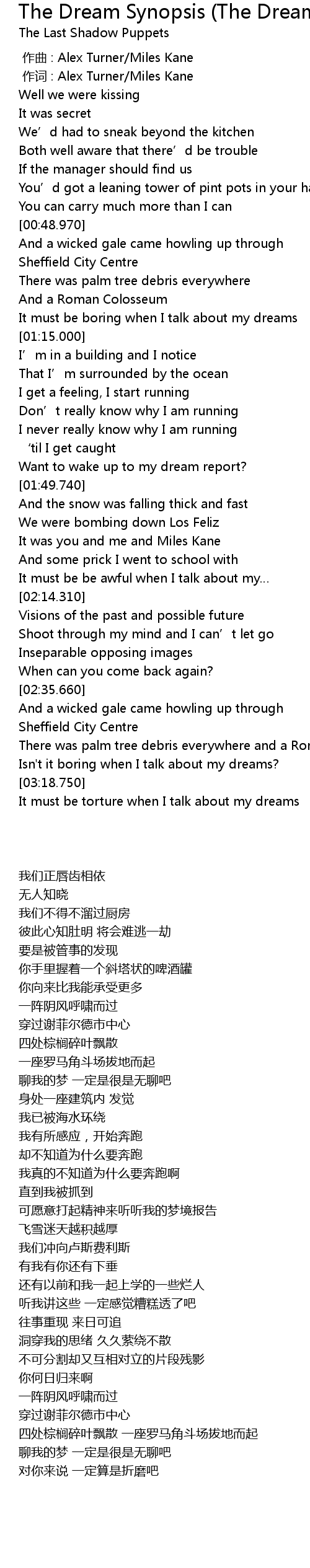 | [00:01.000] | 作词 : Alex Turner/Miles Kane |
