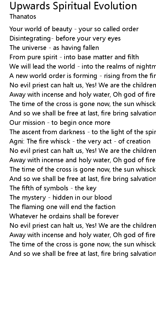 Away with incense and holy water, Oh god of fire and creation |