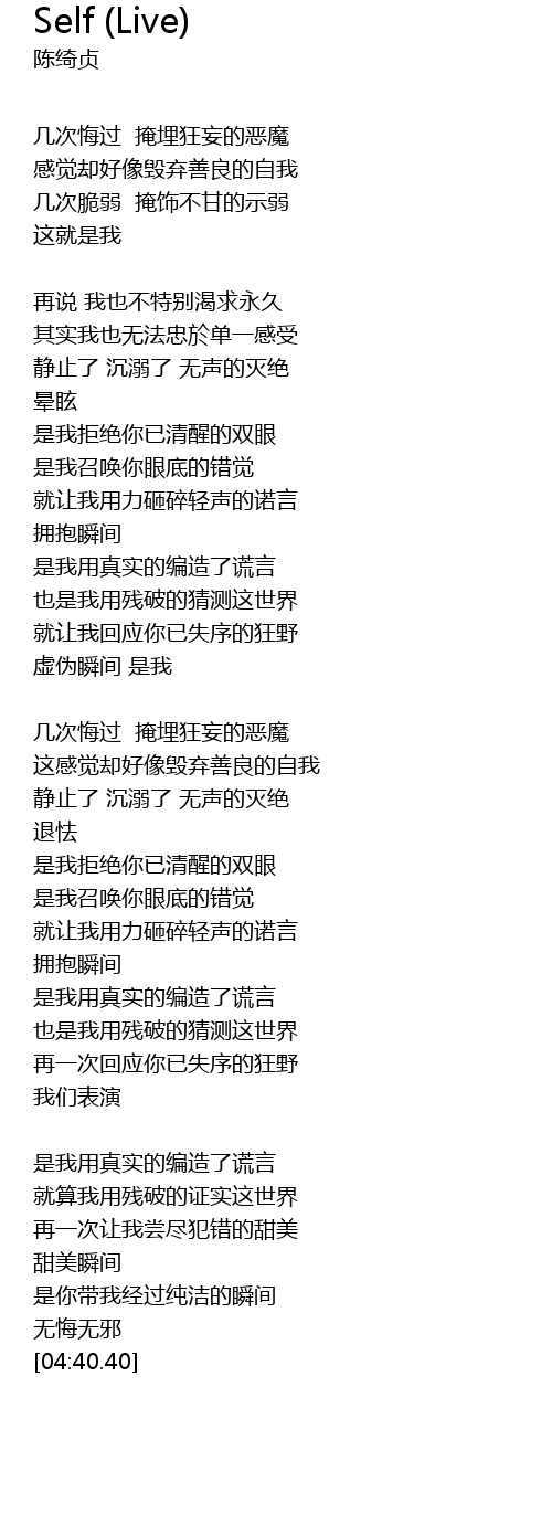 | [02:19.970] | 几次悔过 掩埋狂妄的恶魔 |
