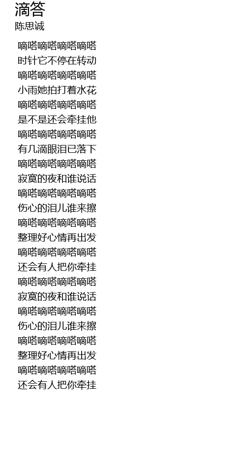 | [01:46.170] | 嘀嗒嘀嗒嘀嗒嘀嗒 |