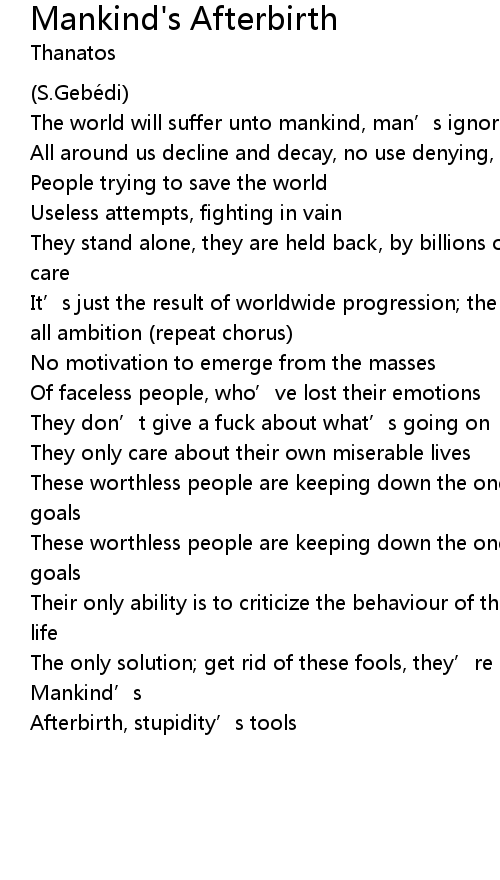 | Song | Mankind's Afterbirth |