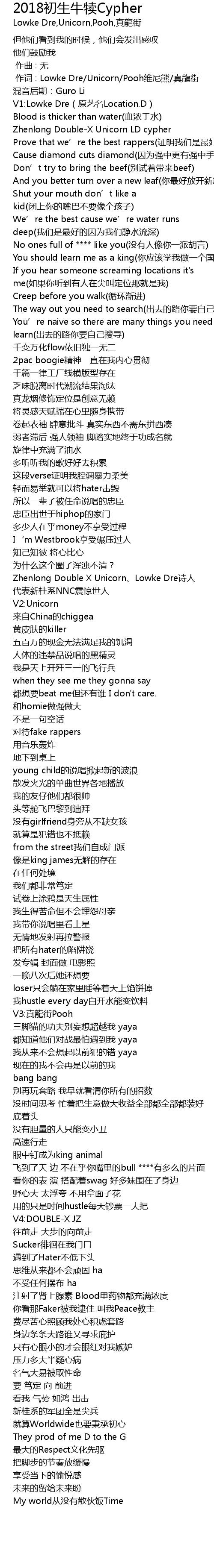 | [00:01.000] | 作词 : Lowke Dre/Unicorn/Pooh维尼熊/真龍街 |