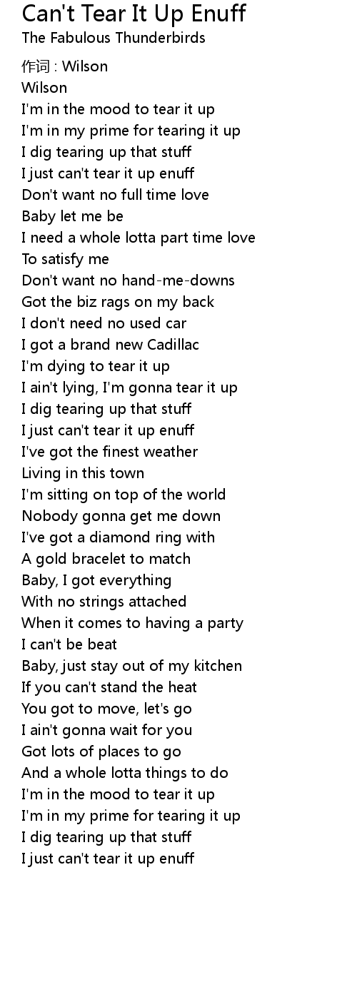 | I just can' t tear it up enuff |