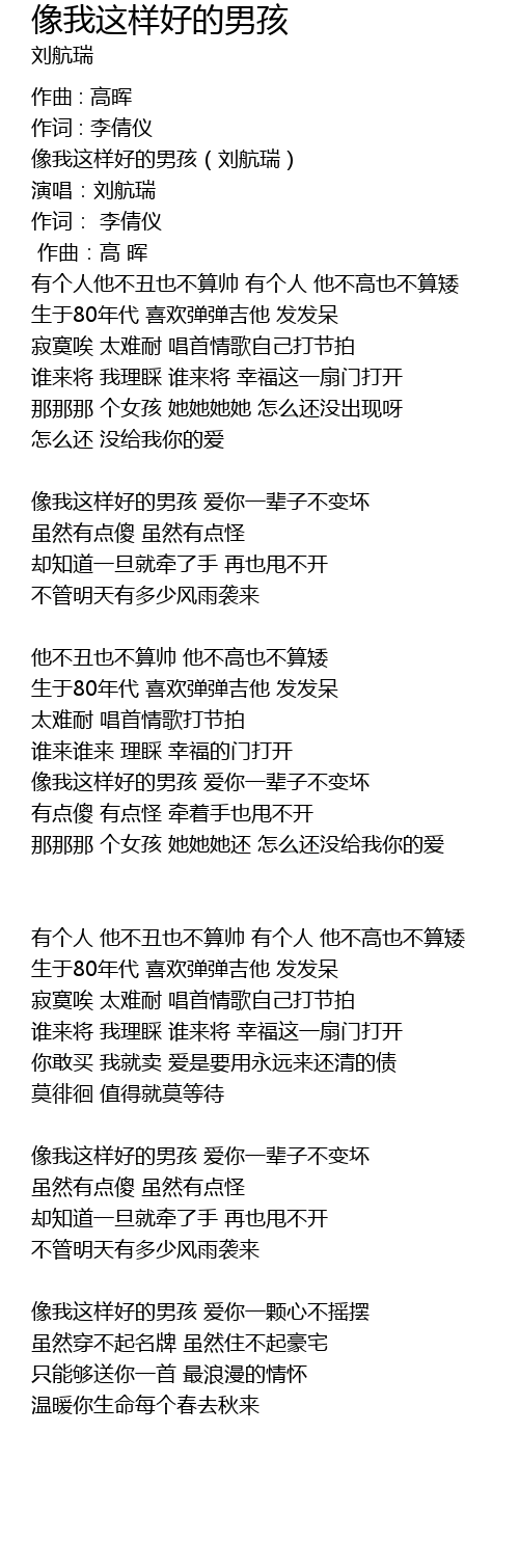 | xiàng wǒ zhè yàng hǎo de nán hái liú háng ruì | |