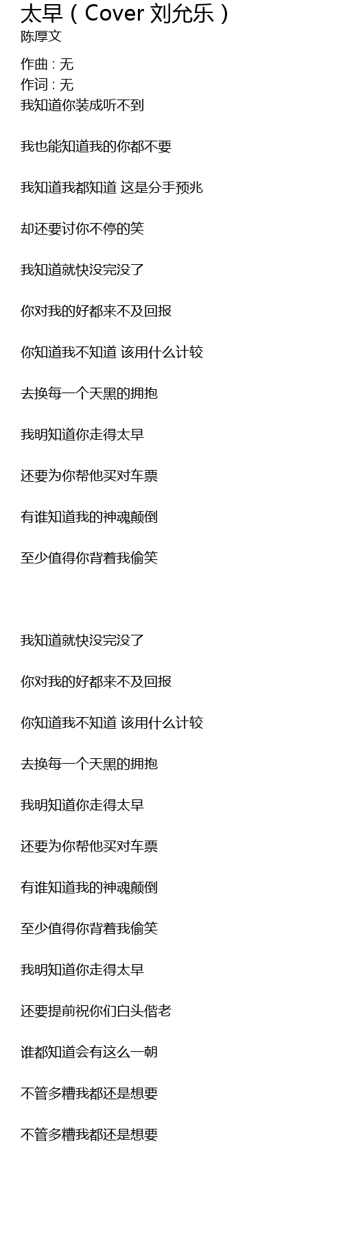| wǒ míng zhī dào nǐ zǒu dé tài zǎo | |