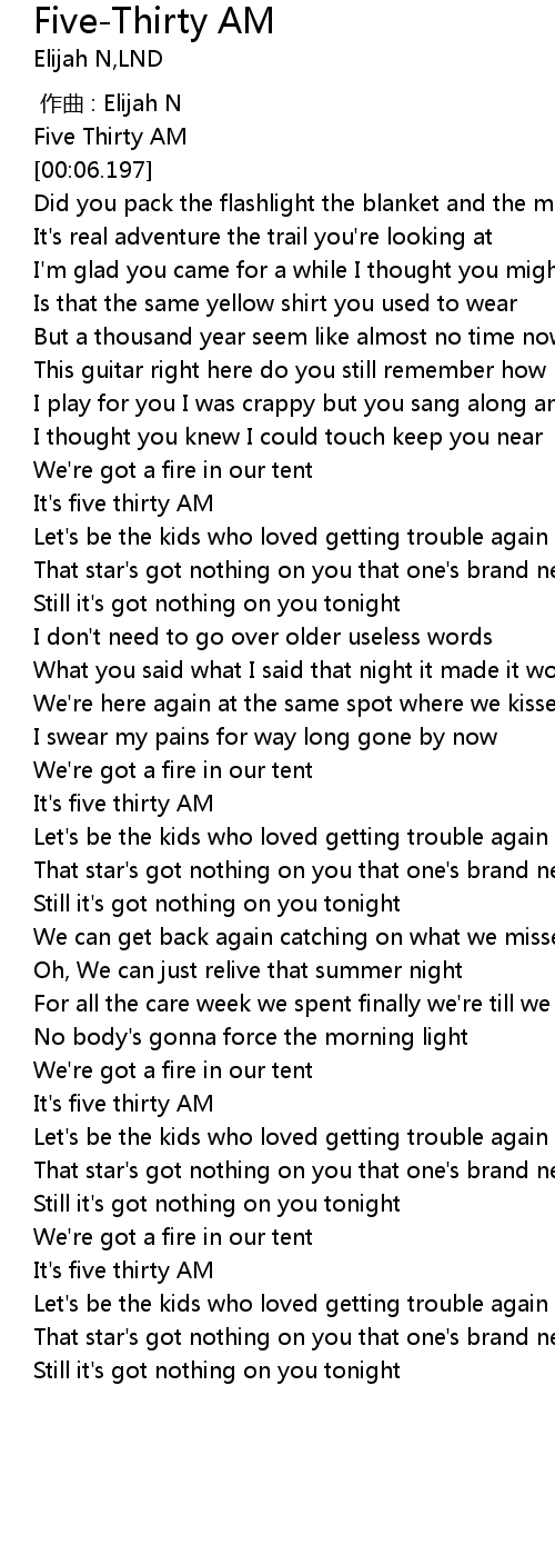 | [00:01.018] | Five Thirty AM |