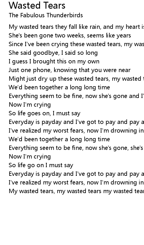 I've realized my worst fears, now I'm drowning in wasted tears my wasted tears |