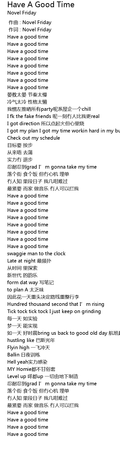| [02:23.00] | Have a good time |