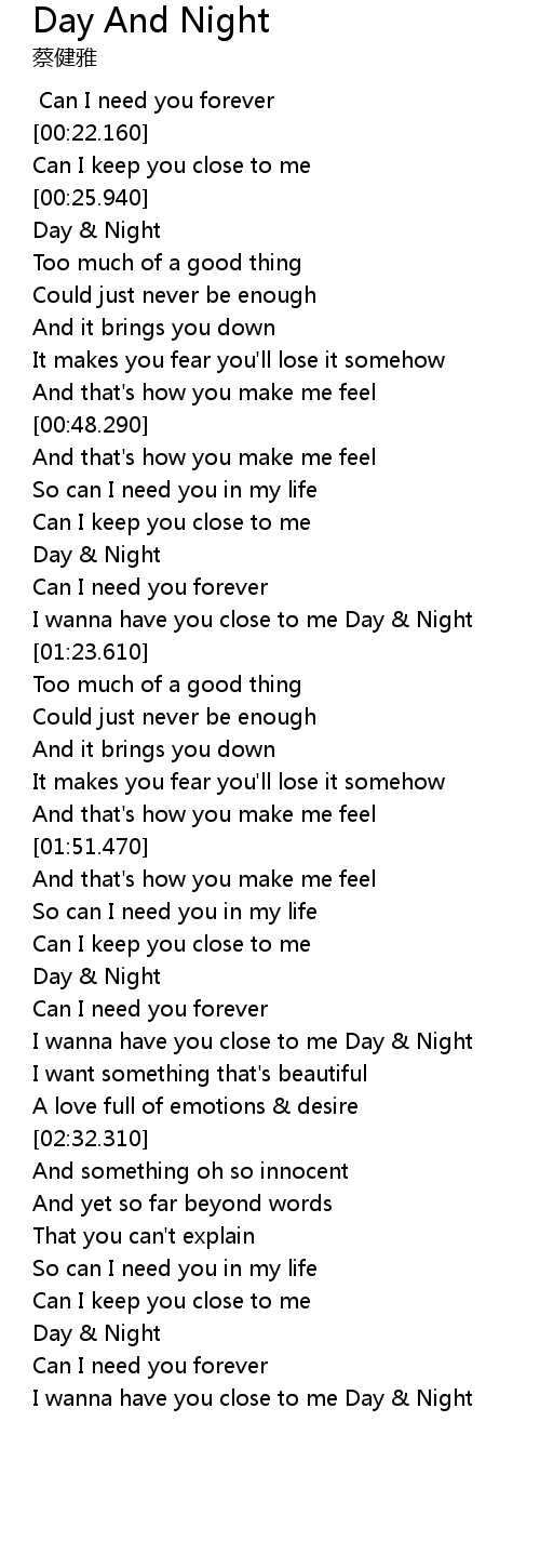 [02:17.510] I  wanna  have  you  close  to  me  Day   Night