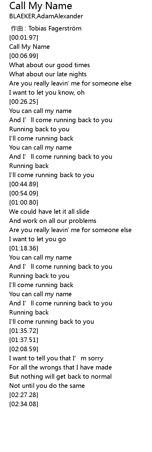 | [00:03.36] | Call My Name |