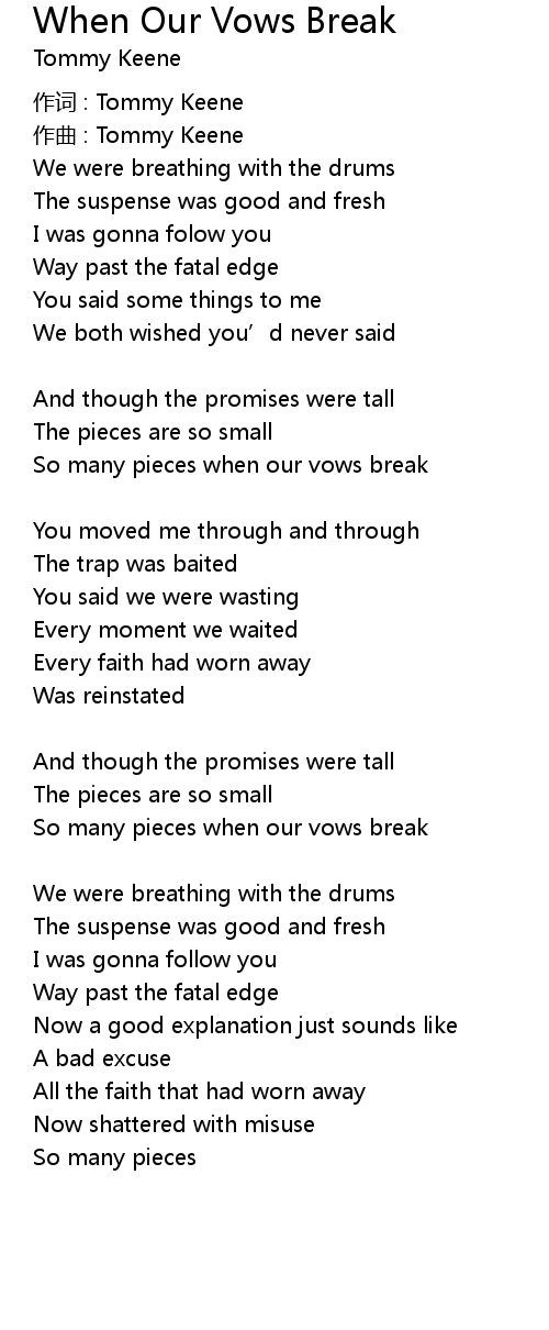 | So many pieces when our vows break | |
