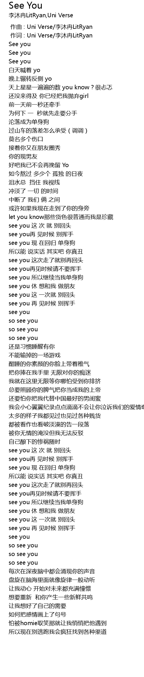 | [01:05.000] | see you 所以继续当我单身狗 |