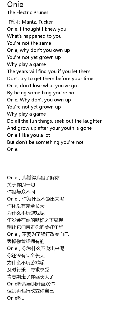 | [01:01.67] | Onie, don' t lose what you' ve got |