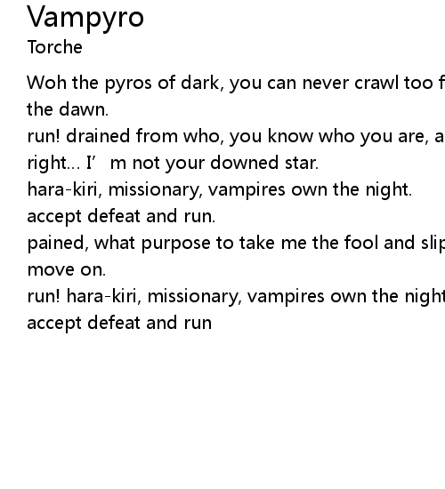 | run! harakiri, missionary, vampires own the night. | |