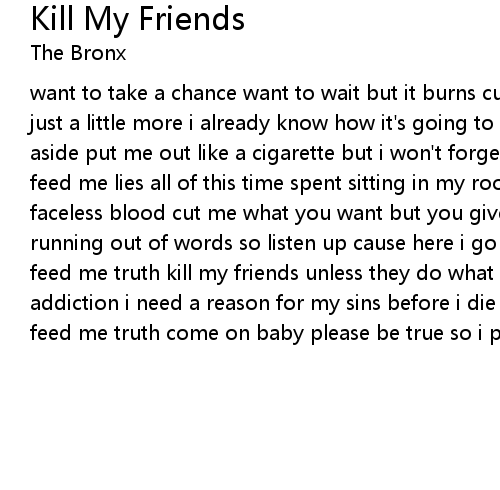 want to take a chance want to wait but it burns cut me what you want but give me just a little more i already know how it's going to feel to let you go cough me aside put me out like a cigarette but i won't forget i'm not dead i'm not fine feed me lies all of this time spent sitting in my room trying to match with the faceless blood cut me what you want but you give me just a little bit more i'm running out of words so listen up cause here i go i'm not dead i'm not alive feed me truth kill my friends unless they do what i say i need silence i need addiction i need a reason for my sins before i die i'm not dead tell me lies feed me truth come on baby please be true so i put cigarettes in my eyes |