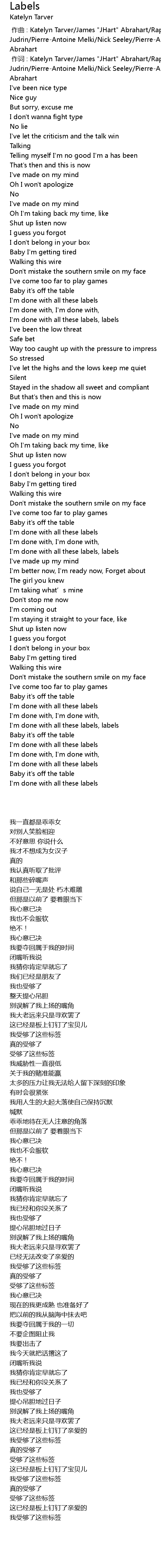 | [00:59.78] | I' m done with all these labels, labels |