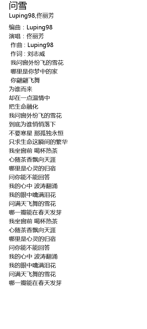 | [02:39.500] | 问满天飞舞的雪花 |