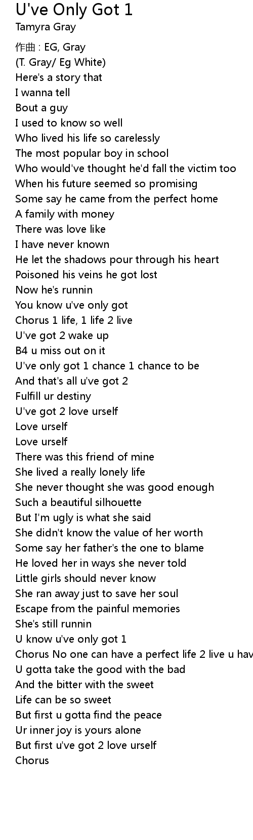 | U' ve only got 1 chance 1 chance to be | |