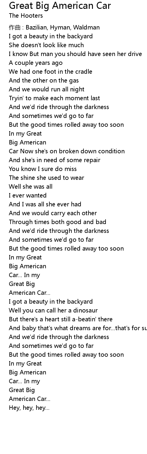 | Song | Great Big American Car |