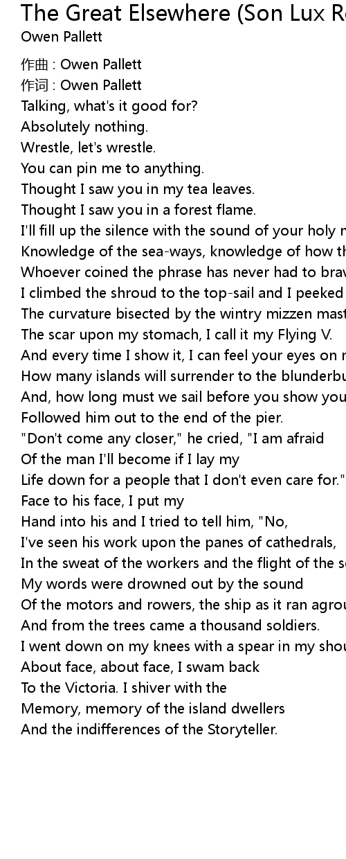 | Song | The Great Elsewhere (Son Lux Remix) |