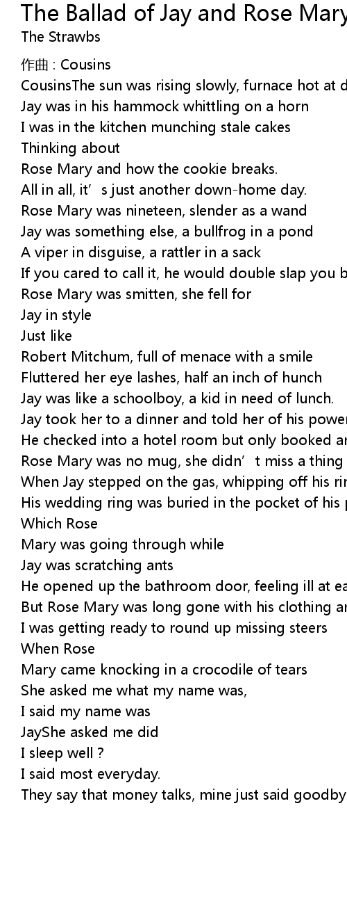 | But Rose Mary was long gone with his clothing and his keys. | |