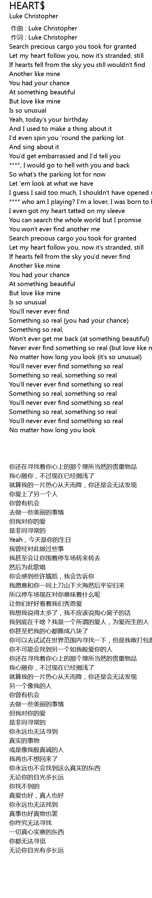 | [00:01.000] | zuo ci : Luke Christopher |