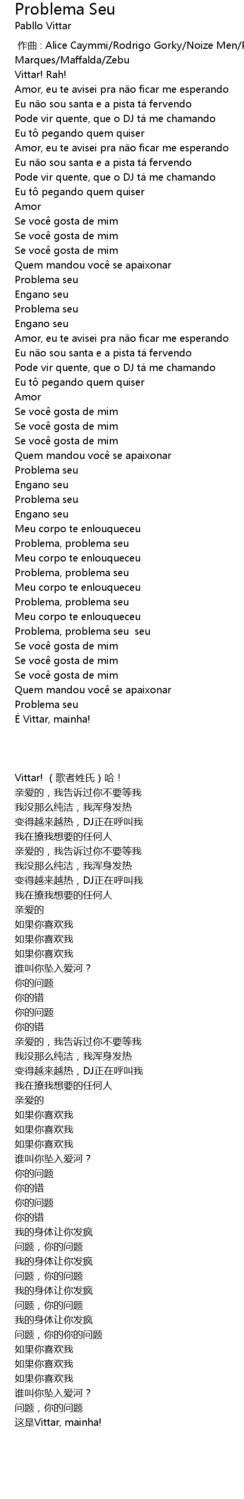 | Song | Problema Seu |