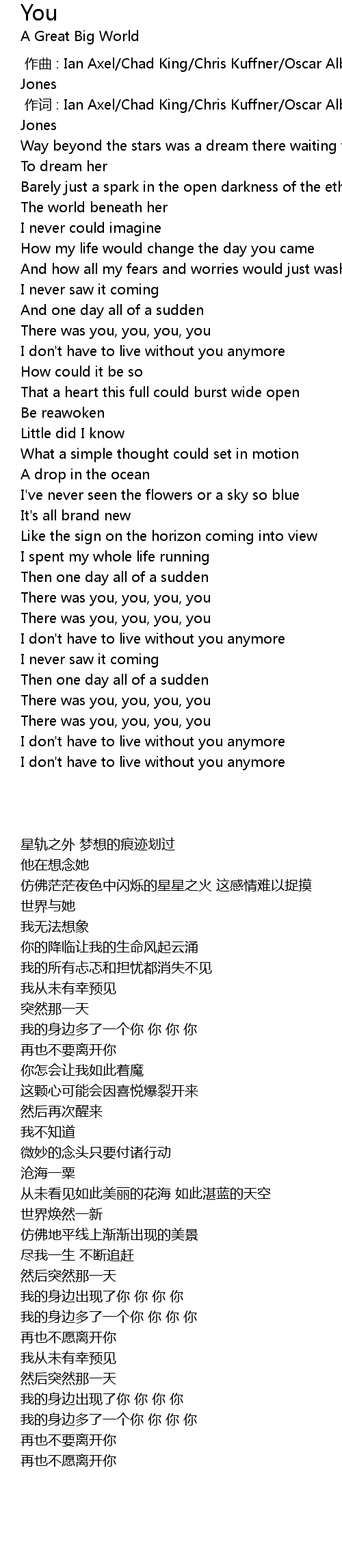 | [00:54.60] | There was you, you, you, you |