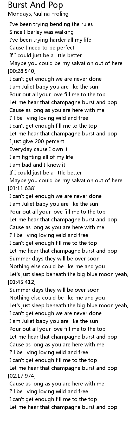 | [00:38.936] | Let me hear that champagne burst and pop |