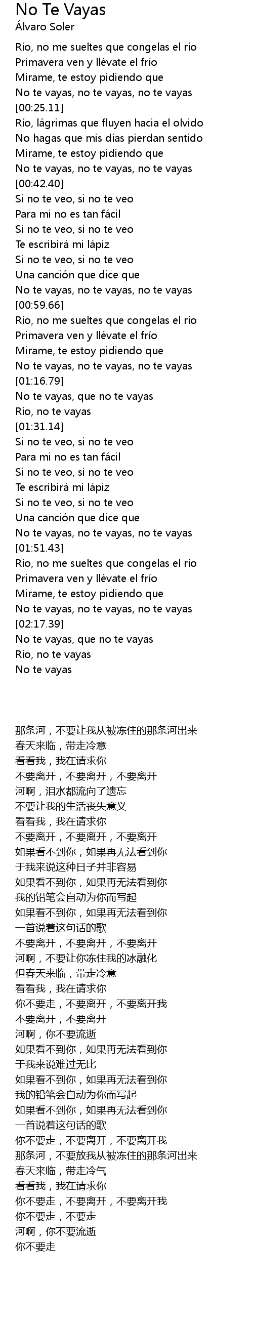 | [00:56.34] | No te vayas, no te vayas, no te vayas |