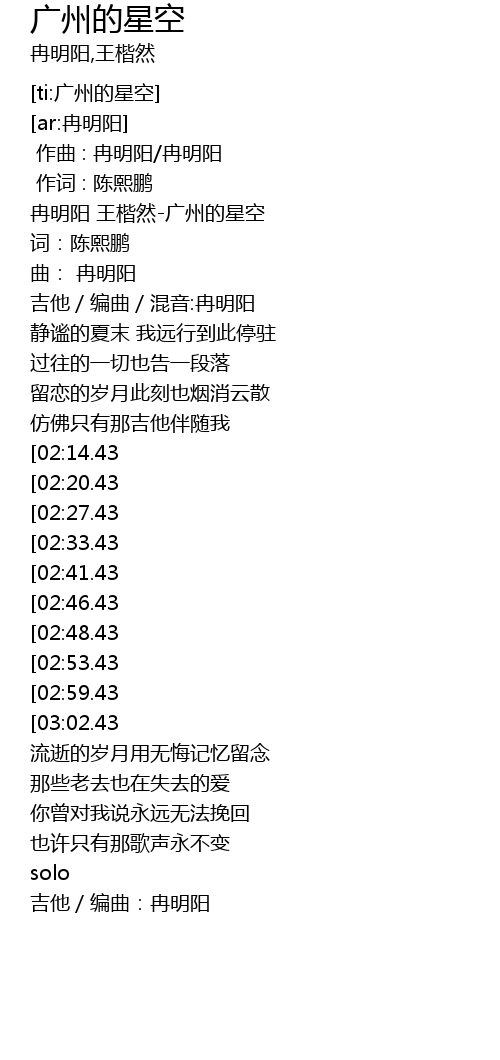 | [00:02.02] | 冉明阳 王楷然-广州的星空 |