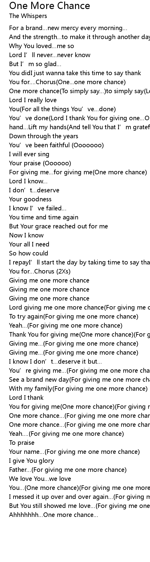 | Lord giving me one more chance(For giving me one more chance) | |