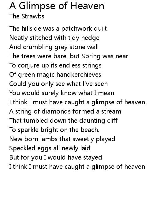 I think I must have caught a glimpse of heaven |