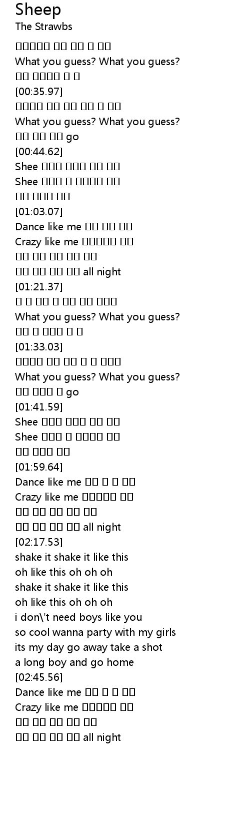 | [00:45.21] | Shee 느껴봐 즐겨봐 오늘 밤에 |