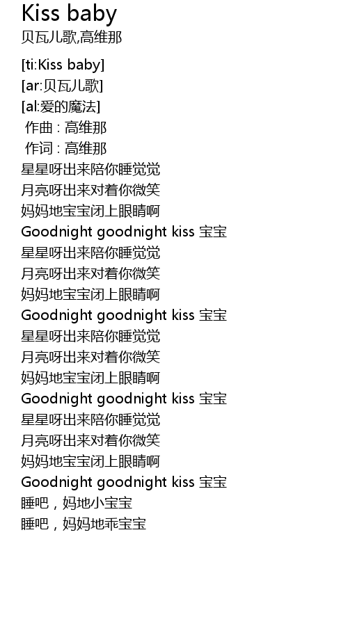 | [01:23.97] | Goodnight goodnight kiss 宝宝 |