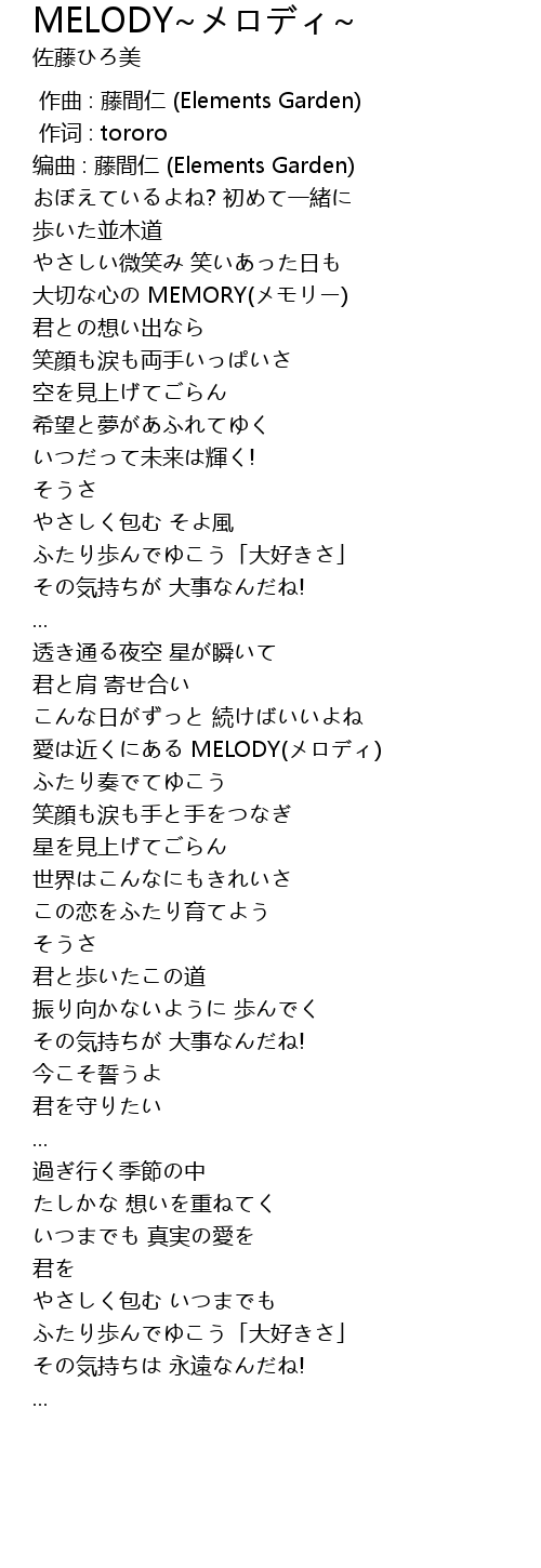 | [02:13.99] | 愛は近くにある MELODY(メロディ) |