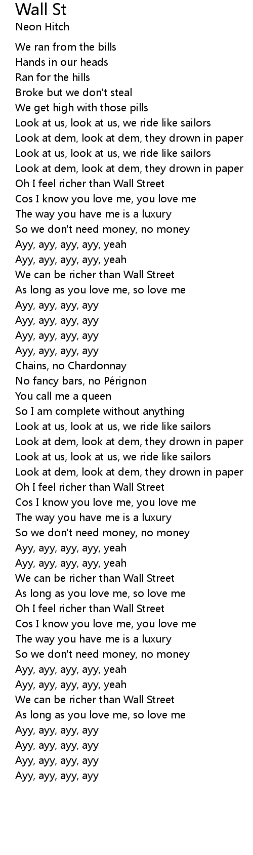 | [02:24.95] | Oh I feel richer than Wall Street |