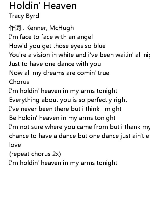 | I' m holdin' heaven in my arms tonight |