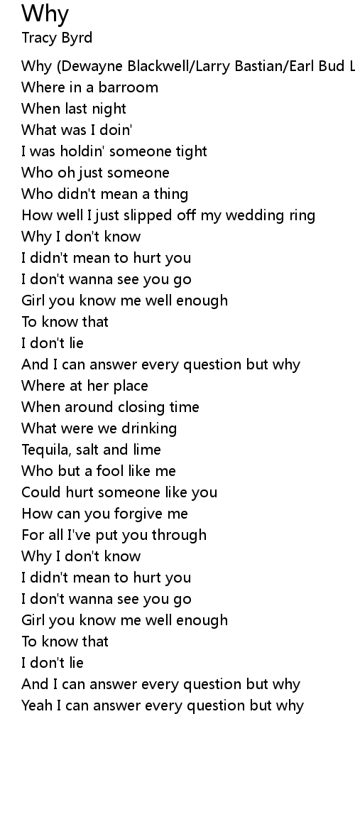Why (Dewayne Blackwell/Larry Bastian/Earl Bud Lee) |
