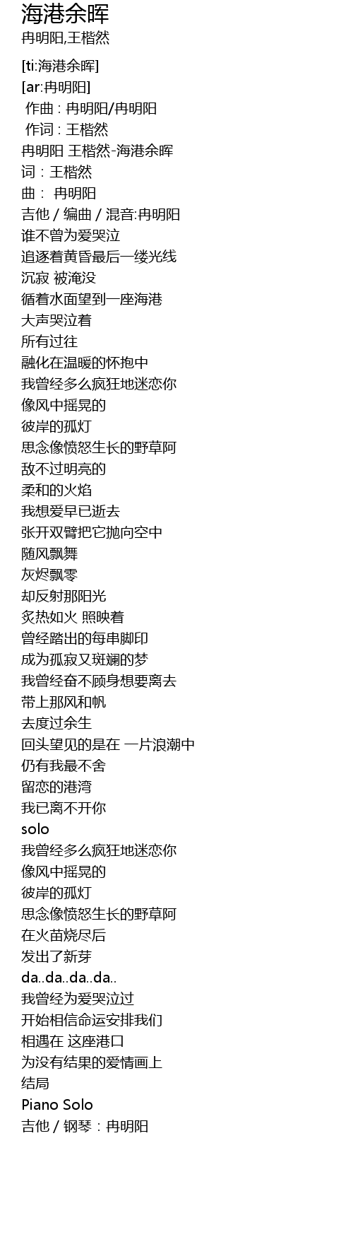 | [04:16.43] | 吉他/钢琴:冉明阳 |
