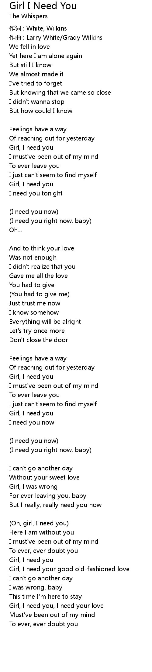 | Girl, I need you, I need your love | |