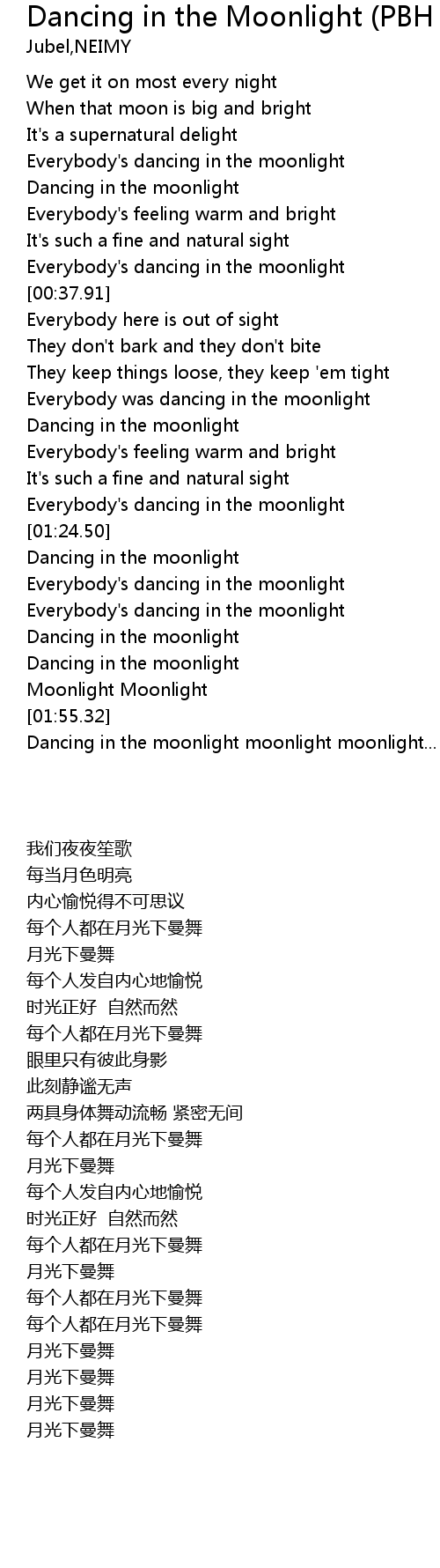 | [01:41.86] | Everybody's dancing in the moonlight |
