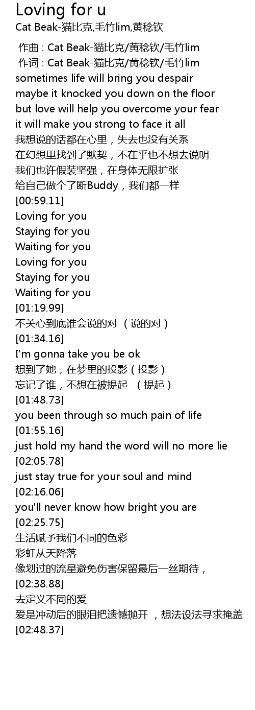 | [00:01.000] | 作词 : Cat Beak-猫比克/黄稔钦/毛竹lim |