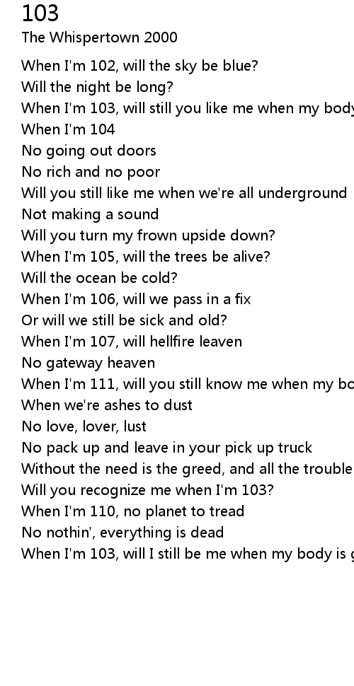 When I'm 103, will still you like me when my body is gone? |